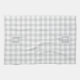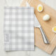 Custom-designed modern farmhouse style kitchen hand towel featuring family initial on light grey buffalo check pattern.