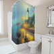 Soft harbour and lighthouse shower curtain