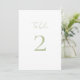 Chic and elegant. This template features the a contemorary set of fonts in a soft mint green, against a white background. The design is repeated at the back for guests to view from all table angles.