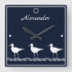 soft navy Sand Pipers on white PILLOW Square Wall Clock