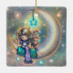 Soft Night Little Girl and Kittens on Moon Ceramic Ornament