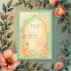 This elegant pastel wedding design features a delicate watercolor arch surrounded by soft floral details in shades of blush, mint, and warm gold. The subtle golden frame adds timeless sophistication, while the gentle colour gradients evoke serenity, love, and joyful celebration. Ideal for modern Arab weddings, Nikah events, and multicultural ceremonies, it brings together beauty, calm, and refinement.