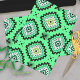 Modern bright tissue paper design featuring a seamless pattern made of geometric shapes in black, white, mint green, forest green and lime green on a soft pastel green background.