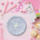 Pastel hydrangeas in beautiful light colour of mauvy blue accent this paper plate. Lovely garden flowers. Add a name or words, great for a bridal shower or wedding.