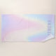 Trendy beach towel featuring a soft pastel rainbow pattern background and your name in light purple.