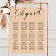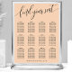 Help your guests find their places with ease using this elegant soft peach wedding seating chart. The design features a modern, hand-lettered "find your seat" script in black, paired with a clean serif font for guest names and table numbers. Its sophisticated minimalist aesthetic and warm peach tone make it a versatile choice that beautifully complements a variety of wedding themes, from romantic garden ceremonies to modern indoor receptions. This layout is perfectly structured for high readability, ensuring a smooth transition for your guests from the ceremony to the celebration. It provides a polished and professional touch to your special day's decor.
