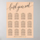Welcome your guests with this elegant soft peach wedding seating chart. Featuring a minimalist design with modern script that says find your seat, this seating chart is perfect for a sophisticated and stylish wedding. The soft colour and clean layout provide a refined and organised look, ensuring your guests can easily find their seats. Customise with your names and table arrangements to create a unique and cohesive addition to your wedding decor. This seating chart accommodates up to 12 tables, making it ideal for a well-planned and elegant celebration.
