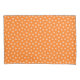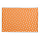 A vibrant, retro-inspired floral pattern featuring soft peachy-beige small flowers evenly spaced across a rich orange background. Each flower is surrounded by tiny dots.