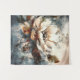 This tapestry features a cream white peony in detailed watercolor, its dark center and brown-green leaves set against a textured blue-gray background. Perfect for nature lovers, it brings a soft, ethereal warmth to your space.