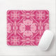 Mouse Pad in an abstract, geometric 4-way mandala pattern in soft shades of fuchsia and pastel pink