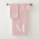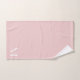 Bath Towel Set with soft pink solid colour background and white font .Simple and trendy design by Alma Wad .Personalise it with your monogram now ..