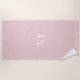 Beach Towel with soft pink solid colour background and white font .Simple and trendy design by Alma Wad .Personalise it with your monogram now ..