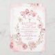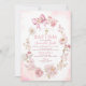 Elegant Blush Pink Floral Girl Christening Baptism Invitation