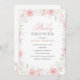 A beautiful frame of pink flowers with pale green leaves against a white background. Perfect for baby showers, bridal showers and little girl's birthdays. (<a href="http://www.freepik.com/free-vector/tender-wedding-invitation-in-pastel-colors_1086725.htm">Designed by Freepik</a>). <br/><br/>The card is easy to customise with your wording, font, font colour, paper shape options and choice of six paper types.<br/><br/>Not exactly what you're looking for? All our products can be custom designed to meet your needs at no extra charge.<br/><br/>Simply contact us at heartfelthelper@gmail.com.<br/><br/>Coordinating products available: Just ask us!