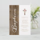 Soft Pink Floral Over Wood Elegant Script Baptism Invitation