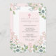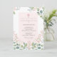 Little pink blossoms and teal-coloured leaves grace this religious invitations for girls. The cross can be dragged to any locations, made larger or smaller ( + - ), or eliminated. The card is easy to customise with your wording, font, font colour and choice of six paper types. Not exactly what you're looking for? All our products can be custom designed to meet your needs at no extra charge. Simply contact us at askpixieprints@aol.com Coordinating products: Soft Pink Floral RSVP Card, Soft Pink Floral Thank You Card