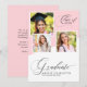 Celebrate a proud graduation moment with this girly modern photo collage graduation announcement. The design features a soft pink and white layout with three photo spaces to showcase favorite memories. Elegant script typography highlights the word “Graduate,” creating a stylish and personal look.