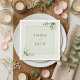 Elevate your wedding reception with this soft and romantic wedding napkin, beautifully decorated with delicate pink floral wedding names and lush green botanical frame accents. The romantic watercolor flowers and pastel soft colour palette lend a graceful touch, while the bride and groom couples names are elegantly displayed at the centre. Perfect for garden party table decor or as a vintage refined detail, this napkin embodies rustic elegant style and adds a charming, refined flourish to your table settings. An ideal choice for those seeking both timeless elegance and a memorable keepsake for their guests.