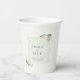 Soft pink greenery names wedding paper cups