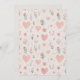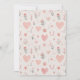 A soft and romantic postcard featuring a delicate pattern of pink hearts and floral elements in warm, neutral tones.