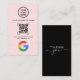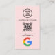 A soft pink business card design with a modern and minimalist layout featuring a QR code for Google reviews. Ideal for beauty salons, spas, boutiques, or creative professionals who want a stylish and feminine look. Clients can easily scan the QR code to leave a review and share their experience.