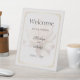 It is sturdy than I expected. Was worried about the material being flimsy but it is not. It is printed on some sort of plastic material. It should serve well at our wedding as long as wind isn’t too bad. Otherwise we will put some paper weights behind it and should be fine.