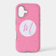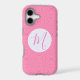 Feminine pink and white design in the squiggly squares fractal. Add an initial for personalisation or the perfect gift. iPhone 17 case makes a lovely gift for her home office or housewarming.
