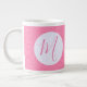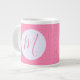 Feminine pink and white design in the squiggly squares fractal. Add an initial for personalisation or the perfect gift. Jumbo or giant coffee mug makes a lovely gift for her home office or housewarming.