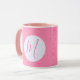 pinkwhitegift womenfeminine pink whitesquiggly squaresgift for herpersonalised initial mug gift