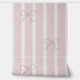 Soft pink and linen coloured vertical striped wallpaper with dusty pink hand drawn bows.