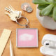 White peony with light pink background on custom square keychain. Perfect for wedding as bridesmaid gift or mother's day or as perfect little