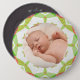 Soft Pretty Green Pastels Custom Merry Christmas Photo Picture Ornament Pin Button Badge. Jolly and Festive Pastels Green and Juicy Orange Custom Christmas Photo Picture Frame Round Christmas Party Clothes Decoration. A soft colourful ornament for your pretty green and orange dopamine dressing drip. The frame design is a merry geometrical abstraction pattern take on traditional colour block festive designs. In pastel colours of winter tree green and bright merry orange for a Winter Wonderland design. Personalise it by replacing the photos with your own for an early gift for family and friends to celebrate Christmas. The stock photo shows a baby sleeping. Cherish your Yuletide memories. A great gift for best friends and brothers and sisters, or new parents and grandparents. A budget friendly keepsake gift, for family celebrations or a baby’s first Christmas.