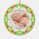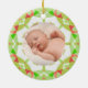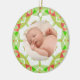 Soft Pretty Pastels Custom Christmas Photo Picture Ornament. Jolly and Festive Pastels Green and Juicy Orange Custom Christmas Photo Picture Frame Round Christmas Tree Decoration. A soft colorful circular bauble ornament for your pretty green and orange multicolour themed tree and decorations. The frame design is a merry geometrical abstraction pattern take on traditional color block festive designs. In pastel colors of winter tree green and bright merry orange for a Winter Wonderland. Personalize it by replacing the two photos, on the front and back, with your own for an early gift for family and friends to celebrate Christmas. The stock photo shows a baby sleeping. Cherish your Yuletide memories. A great gift for best friends and brothers and sisters, or couples. A budget friendly keepsake gift, for family celebrations or first Christmases.