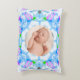 Soft Pretty Pastels Custom Christmas Photo Picture Cushion Ornament. Jolly and Festive Pastels Purple, Green, and Pink Custom Christmas Photo Picture Frame Round Christmas Home Decoration. A soft colorful decorative ornament for your winter blue and green multicolour themed living room and bedroom decorations. The frame design is a merry geometrical abstraction pattern take on traditional color block festive designs. In pastel colors of winter blue with tree green, and pretty pink for a Winter Wonderland. Personalize it by replacing the two photos, on the front and back of the cushion, with your own for an early gift for family and friends to celebrate Christmas. The stock photo shows a baby sleeping. Cherish your Yuletide memories. A great gift for best friends and brothers and sisters, or couples. A budget friendly keepsake gift, for family celebrations or first Christmases.