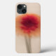 A soft, dreamy floral phone case featuring a blurred red flower on a warm neutral background.
