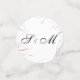 Stylish, contemporary wedding reception table confetti featuring a decorative pattern of dusky pink and grey swirls around the edging. This elegant confetti can be personalised with the bride and groom's monograms, or they can be removed altogether if desired. Please note this is part of a larger collection of matching invitation, save the dates and more, which you can view here: https://www.zazzle.com/collections/soft_rose_and_grey_flourishes-119532891094763537