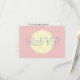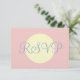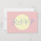 Wedding RSVP written in light blue against pastel rose. Larrge cream geometric circle in the centre. Lovely for a spring, summer wedding. Personalise backside in black text on white background with your special occasion details. Original Design by TamiraZDesigns.