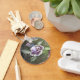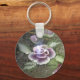 Soft Rose Key Chain Painted by Patty Gentile. With a dark green almost like marble background.This purple and white rose with light green leaves is in full bloom. Two small buds and a side view of a second rose makes this hand painted flower have a look you can almost smell.