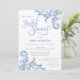 © Socialite Designs Inc. Beautiful corner swirls and flourishes bridal shower invitation, painted in soft royal blue watercolor and silver-grey text. An elegant invitation for any time of year celebration. If you require help with customising or would like other products created with this design, please do not hesitate to contact Socialite Designs.