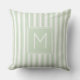 Soft Sage Green and White Ticking Stripe Monogram Cushion