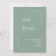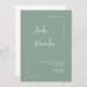 This elegant modern minimalist wedding invitation features a clean sage green background with stylish calligraphy of the couple’s names and a simple serif font for the event details. The timeless design includes a large personalised photo of the happy couple on the back, accompanied by a QR code that allows guests to RSVP quickly and conveniently.