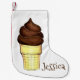 Holiday stocking features an original marker illustration of a delicious soft serve chocolate ice cream cone. Simply personalise with your name for a unique Christmas stocking!