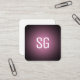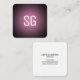 A square business card template with initials placed on a soft circular spot. Name and profession/job title along with telephone, email and website address in black on the reverse side on a white background. This template is also a good starting point for further customisation.