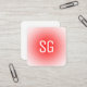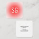 A square business card template with initials placed on a soft circular spot. Name and profession/job title along with telephone, email and website address in black on the reverse side on a white background. This template is also a good starting point for further customisation.
