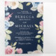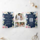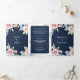 Soft Spring Floral Navy Blue QR Code Wedding Tri-Fold Invitation
