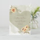 Embrace the free-spirited charm of boho elegance with our enchanting wedding invitation. Featuring a soothing sage green watercolor wash background, the centerpiece is a darker sage green heart adorned with clusters of soft yellow, brown, and sage green sunflowers. The modern script font heading and clean, casual body text offer a contemporary touch, perfectly balancing style and ease. This design beautifully captures the essence of your love story, inviting your guests to celebrate in a setting of natural beauty and relaxed sophistication. Sunflower graphics created by Verya Studios. Created by Simply Farmhouse Press.