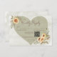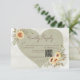 Embrace the free-spirited charm of boho elegance with our enchanting wedding response card with QR code. Featuring a soothing sage green watercolor wash background, the centerpiece is a darker sage green heart adorned with clusters of soft yellow, brown, and sage green sunflowers. The modern script font heading and clean, casual body text offer a contemporary touch, perfectly balancing style and ease. This design beautifully captures the essence of your love story, inviting your guests to celebrate in a setting of natural beauty and relaxed sophistication. Sunflower graphics created by Verya Studios. Created by Simply Farmhouse Press.