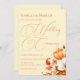 This elegant wedding invitation captures the beautiful colours of a "Verona Sunset" with a soft and subtle touch. The warm, inviting lemon chiffon background creates a gentle canvas for the vibrant floral arrangements, while the graceful orange text adds a pop of colour that feels both romantic and sophisticated. This design is perfect for couples who want to evoke the feeling of a warm, destination wedding with a classic and refined aesthetic.