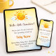 A soft watercolor sunshine baby shower invitation featuring a warm smiling sun, gentle pastel sky tones, and light airy clouds. The delicate colour palette creates a calm and welcoming atmosphere while keeping the joyful sunshine theme at the centre. Perfect for spring baby showers and sunshine-themed celebrations with a sweet and elegant feel.
