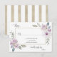 An elegant gold frame and soft florals in muted tones of violet, lavender, and purple with white floral accents and lush matching greenery RSVP cards. The text boxes are easy to change with your own text using a mix of handwritten calligraphy and modern fonts. PLEASE NOTE: This design uses custom text for certain words - if you wish to change them, please email me at shutterbug600@yahoo.com and I'll be happy to change them for you. The back of the card features faux textured gold stripes. Matching wedding invitation available